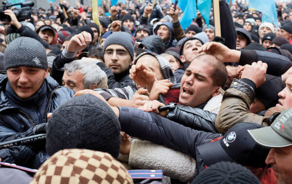 Es sei sein erster und letzter Krieg gewesen, sagt Pierre Crom. Der in Frankreich geborene und seit 1987 in den Niederlanden lebende Fotograf und Fotojournalist hatte nie etwas mit dem Herstellen von Kriegsbildern zu tun gehabt, als er sich nach jahrelanger Arbeit mit Fokus auf vor allem die niederländische Politiklandschaft 2014 dazu entschloss, die Krim zu bereisen. Wie es Schicksal oder Zufall wollten, begann quasi mit seiner Ankunft die Annexion der Insel durch Russland. Crom entschied sich, vor Ort zu bleiben und erlebte in den folgenden fast zwei Jahren hautnah mit, wie sich ein von der Weltöffentlichkeit zu diesem Zeitpunkt noch unterschätzter Konflikt entwickelte, der acht Jahre später schließlich im überfallsartigen Angriff der russischen Armee auf die Ukraine mündete.