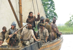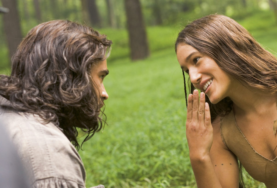 Nun also Pocahontas, das schöne (im Film lange namenlose) indigene Mädchen. Captain John Smith, Jamestown, Virginia, der amerikanische Gründungsmythos. Was interessiert Malick daran? Nicht die historischen „Fakten“ (die gibt es in den Studien von Klaus Theweleit nachzulesen), aber auch nicht die „dumpfe Liebesaffäre“ (Theweleit über den Film in der Zeit). Es sind die existenziellen Erfahrungen entwurzelter, aus der Zeit geworfener Menschen. Ein Indianer, ausdruckslos starrend in einem englischen Garten der Alten Welt; Pocahontas, wie sie ihre Füße zum ersten Mal in Stöckelschuhe zwängt; Captain John Smith, nach seinen Ausschweifungen mit Pocahontas aus dem halshohen Schilf zum Stützpunkt zurückkehrend, wie er nur Zeugnisse von Verwahrlosung, Elend und Zwietracht unter seinen (ehemaligen) Gefolgsleuten vorfindet.
