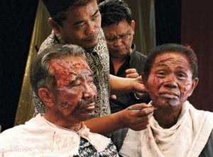 Erster Eindruck: Der Mann im schlabbrigen Anzug, der mit schwarzer Sonnenbrille und gefärbtem Haupthaar wie das Opfer einer späten Midlife Crisis erscheint, kann keiner Fliege etwas zuleide tun. Und doch ist Angwar Congo ein Massenmörder. Aufgestiegen vom kleinen Gauner zum gefürchteten Schlächter des indonesischen Militärregimes. In den Jahren 1965/66 wurden mehr als eine Million (vermeintliche) Kommunisten, darunter zahlreiche chinesische Einwanderer, von den Todesschwadronen der paramilitärischen Einheiten hingerichtet. Congo war einer von ihnen. Und selbst knapp 50 Jahre danach ist er in der Öffentlichkeit immer noch ein Held und lässt sich als Ehrenmitglied der Terror-Nachfolgeorganisation Pancasila feiern. Geschichtsaufarbeitung? Fehlanzeige.