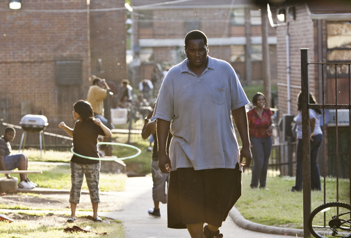 Dabei schien Michael Oher schon auf dem direkten Weg ins gesellschaftliche und soziale Abseits. Von seiner drogenabhängigen Mutter völlig vernachlässigt, wurde er zwischen Waisenhäusern und Pflegefamilien hin- und her geschoben, wechselte elf Mal die Schule und musste sich zwischenzeitlich auch als Obdachloser auf den Straßen von Memphis durchschlagen, ehe er dank der Vermittlung eines Bekannten auf einer privaten, konfessionellen Schule aufgenommen wurde. Doch der mittlerweile sechzehnjährige Oher war zunächst hoffnungslos überfordert, ein Schulabschluss schien völlig unmöglich. Doch dann fiel der junge Mann mit der riesenhaften Gestalt, der zumeist allein, verloren und ziellos über den Schulhof schlenderte, dem Ehepaar Tuohy, deren Kinder dieselbe Schule besuchten, auf. Kurzerhand beschlossen die beiden, Michael bei sich aufzunehmen, sich um ihn zu kümmern und ihn schließlich sogar zu adoptieren. Was ohnehin ein außergewöhnliches Maß an sozialer Verantwortung darstellte, bekam im US-amerikanischen Süden eine zusätzliche Dimension der besonderen Art, zählten die Tuohys doch zur (weißen) Upper-Class von Memphis, Michael Oher ist dagegen afro-amerikanischer Abstammung.