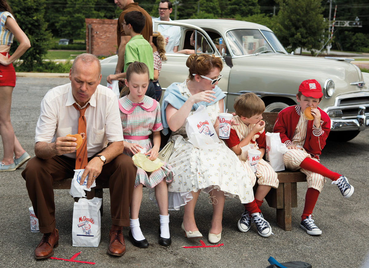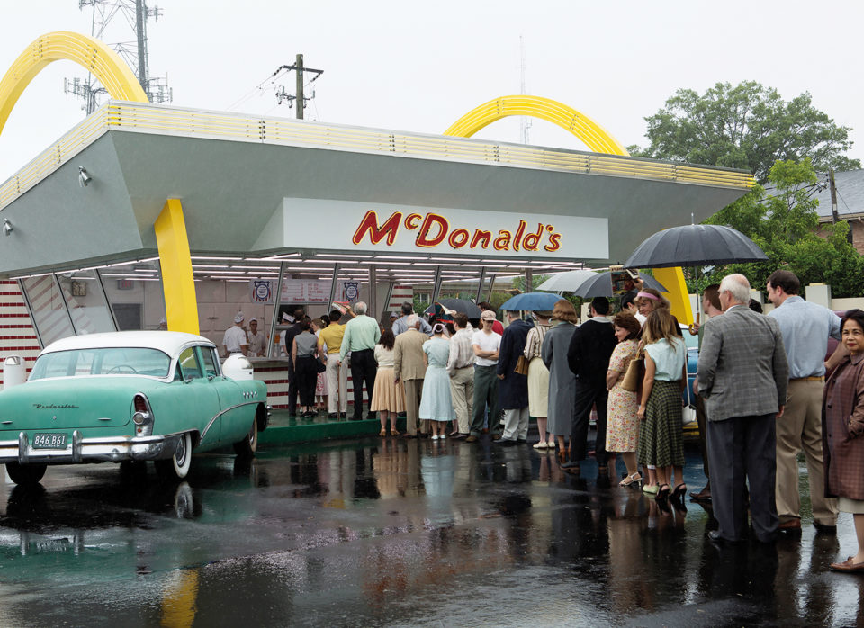 Im Fokus von The Founder stehen zunächst jedoch nicht die eigentlichen Gründer und Namensgeber sondern der Handelsvertreter Ray Kroc (Michael Keaton). Der, schlägt sich im Alter von Anfang fünfzig mit dem Verkauf von Geräten zur Herstellung von Milkshakes durch das mühsame Leben eines Handelsreisenden. Doch eines schönen Tages – wir schreiben das Jahr 1954 – erreicht ihn eine höchst ungewöhnliche Bestellung. Während Kroc seinen Kunden sonst kaum eines dieser Geräte verkaufen kann, ordert ein Restaurant in San Bernadino gleich ein halbes Dutzend dieser Maschinen. Neugierig geworden macht sich Ray Kroc nach Kaliforniern auf. Dort findet er ein gut gehendes Drive-In-Lokal, das von Maurice (John Carroll Lynch) und Richard McDonald (Nick Offerman) betrieben wird. Bereitwillig weihen die Brüder Kroc in das Geheimnis ihres Erfolgs ein: Genau orchestrierte, maximal optimierte Arbeitsprozesse, die wie am Fließband ablaufen um damit die Standards der Produkte stets einzuhalten – also alles das, was man mittlerweile unter dem Begriff „Systemgastronomie“ subsumiert. Schnell erkennt der umtriebige Ray Kroc das Potenzial dieses Systems, er schlägt den Brüdern McDonald vor, es mittels Franchise –Nehmern zu verbreiten und so McDonald’s – damals schon der Name des Lokals von Maurice und Richard – zu einer landesweiten Marke zu machen. Weil jedoch die Brüder mit ihrem Leben und dem Restaurant eigentlich zufrieden sind, muss Ray schon all seine Überredungskunst aufbieten, um sie schließlich doch von seinem Plan zu überzeugen und ihn als Partner mit an Bord zu holen – allerdings mit einem ganz kleinen Anteil. Und was die Qualitätsstandards gastronomischer Natur angeht, behalten sich die McDonald-Brüder ohnehin das letzte Wort vor.