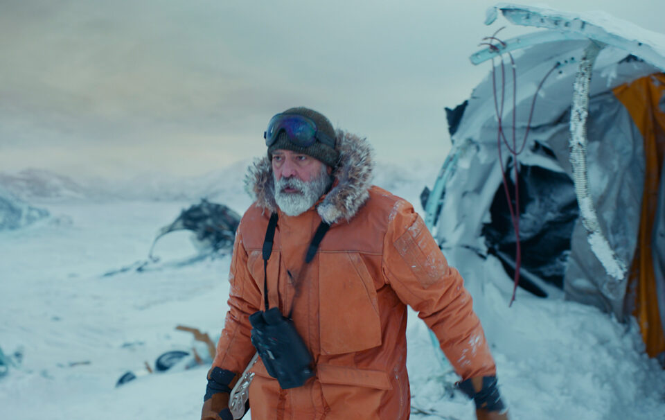 Dabei – anfangen tut es auch hier gut. „2049, drei Wochen nach dem Ereignis“, wie ein Insert lapidar verkündet, fliehen alle Menschen, die in der oder um die Barbeau-Sternwarte am nördlichen Polarkreis gearbeitet und gelebt haben, mit den letzten Hubschraubern in Richtung Zivilsation. Nur einer bleibt zurück: der schwer kranke Forscher Augustine Lofthouse (Clooney selbst, der sich hier, mit Mel-Gibson-Rauschebart, sichtlich lustvoll ins Altersfach begibt). Aber Lofthouse hat, wie wir bald sehen, noch einen Grund, auf der Station zu bleiben: Hier nämlich hat er, zumindest sporadisch, Kontakt zum Raumschiff Aether, das soeben von einer zweijährigen Mission vom neu entdeckten Planeten K-23 zurückkehrt. Dieser, so hat die Aether-Besatzung herausgefunden, würde sich durchaus eignen, um der Menschheit in Zukunft als Lebensraum zu dienen.