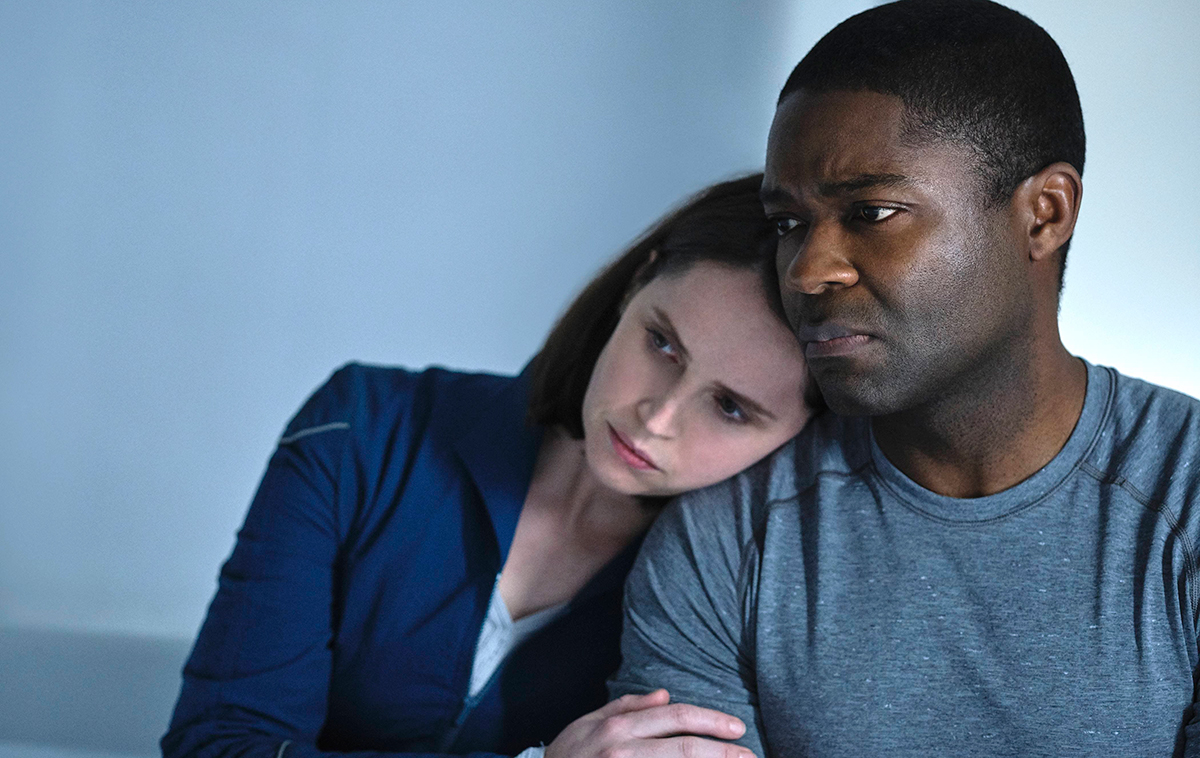Warum Lofthouse das Raumschiff bzw. dessen Besatzung so wichtig ist, erfahren wir im Laufe der Geschichte und anhand mehrerer Rückblenden, und wer diese Flashbacks aufmerksam betrachtet, kann es auch bald mit Händen greifen. Das ist das eine Problem des Films, wenngleich die Handlung am Polarkreis, mit Nachsicht aller Taxen, als durchaus okay durchgeht. Zwingend logisch ist sie nicht. Warum zum Beispiel alle von dort flüchten, obwohl es offenbar einer der wenigen nicht verseuchten Orte der Erde ist, bleibt rätselhaft. Die größere Krux aber ist das klischeehafte, um nicht zu sagen einfältige Geschehen an Bord des Raumschiffs, wo die selbstverständlich ethnisch ausgewogene Besatzung (zwei Weiße, zwei African-Americans, ein Latin-American, nur auf Native- und  Asian-Americans hat man geflissentlich verzichtet) auf die Erde zusteuert. Was die Mannschaft – trotz modernster Kommunikationssysteme – nicht weiß, ist, dass es auf der Erde eben jenen zu Beginn angesprochenen „Zwischenfall“ gegeben hat. Bis das Team endlich mit Dr. Lofthouse in Kontakt kommt, vergeht viel Zeit, die gefüllt wird mit den handelsüblichen technischen Kalamitäten (Meteoriten!) und ausgesprochen flauen Späßchen zwischen den Crew-Mitgliedern. Eine von ihnen (Felicity Jones, deutlich unterfordert) ist nämlich schwanger, und sie wird ein Mädchen bekommen – haha, wie lustig!