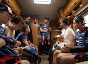 „Der Erfolg lag ihm im Blut“, heißt eine Tagline des Trailers. Dass Armstrongs Erfolg auch den weniger Erfolgreichen die Blutbahn verstopfte, deutet The Program an, konzentriert sich dabei aber auf Armstrongs Teamkollegen, die sich für seinen Erfolg abgestrampelt haben. Auf der Strecke bleiben musste offenbar die Chance zu zeigen, wie stark der Medikamentenmissbrauch schon seit den neunziger Jahren den gesamten Profiradrennsport durchdrungen hat. Nur zu Beginn weisen zwei Szenen darauf hin. Einmal sieht man den noch grünen Armstrong, wie er vor dem Start eines Rennens seinen späteren Team-Manager Johan Bruyneel (Denis Ménochet) kennenlernt. Der Belgier zeigt auf ein paar Fahrer und sagt sinngemäß: „Wenn du etwas reißen willst, musst du nachhelfen.“ Und eine witzige Szene in einer französischen Apotheke veranschaulicht, wie leicht es anfangs war, sich Pharma-Booster zu besorgen wie EPO, für das es bis 2001 keine Nachweismethode gab. Bei Oprah formulierte Armstrong denn auch: „Ich wollte nur Waffengleichheit herstellen“, aber das gegengleiche Phänomen ließ er außen vor. Denn durch die steigende Durchschnittsgeschwindigkeit der Spitzengruppe baute sich auch immer mehr Druck auf das Hauptfeld auf. Wie Armstrongs Teamkollege Frankie Andreu (Edward Hogg) – auf Druck seiner Frau Betsy (Elaine Cassidy) später Zeuge gegen das Alphatier – mussten wenig begabte Bergfahrer schlicht dopen, um ihren jeweiligen Helferdiensten nachkommen zu können.