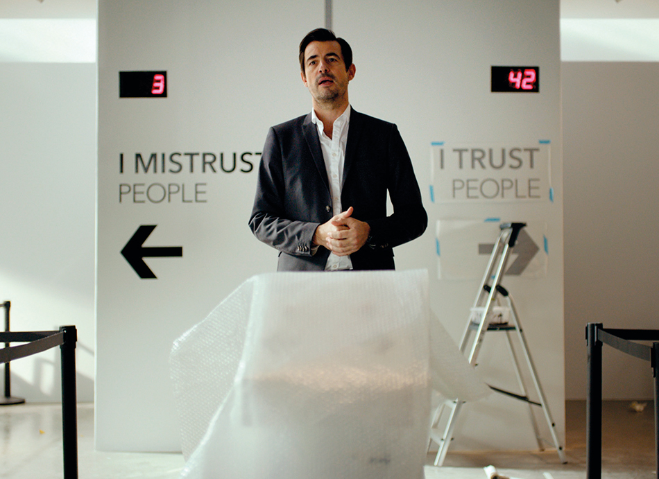 Im Mittelpunkt steht Christian (Claes Bang), der in Stockholm ein Museum für Gegenwartskunst leitet und mit der Routine seines privilegierten Lebens grundsätzlich zufrieden ist. Als ihm allerdings auf der Straße von Trickdieben sein Smartphone gestohlen wird, ist dies ein Erlebnis, das ihn aufgrund des abenteuerlichen Flairs fast schon euphorisiert. Während Christian die Suche nach dem Telefon mit sozialen Schichten in Kontakt bringt, die er bisher mied, verunglückt eine provokante PR-Kampagne des Museums und löst einen Shitstorm aus (es geht dabei um das titelgebende Kunstwerk, das andere Menschen verpflichten soll, einem zu helfen, wenn man es betritt). Eine Affäre mit einer Journalistin, die einen Schimpansen als Mitbewohner hat, beginnt an Christians Nerven zu zehren, und zu seinen Töchtern findet der Geschiedene auch keinen rechten Draht. Schließlich führt die Rückholaktion des Smartphones zu einer erschütternden Begegnung.