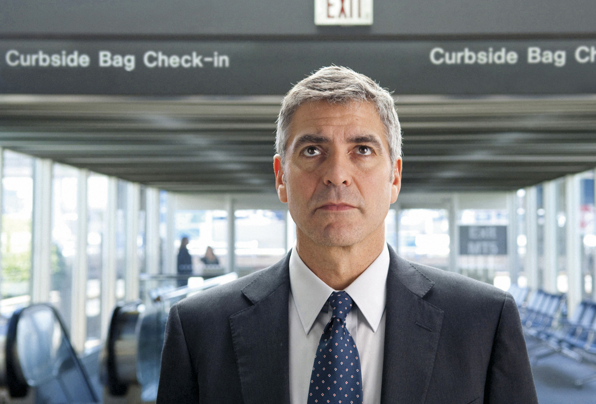 Who the fuck are you?“ Gute Frage, denkt sich auch Ryan Bingham, der adrette Herr im silbergrauen Anzug mit passender Haarfarbe, als sie ihm in einer explosiven Mischung aus Wut, Verzweiflung und Unverständnis an den Kopf geworfen wird. „Who am I?“ Doch noch im selben Augenblick prallen die Worte an ihm ab wie Wasserperlen an einem Marmorberg, hat er für den zerknirschten, weil gerade gefeuerten Fragesteller eine ebenso standardisierte wie völlig nichtssagende Antwort parat, die ihn zügig zum nächsten Punkt im motivationsorientierten Trennungsgespräch bringt. Denn der Mann ist auf seinem Gebiet das, was man einen Profi nennt: Ryan Bingham ist Entlassungs-Spezialist. Beeindruckende 322 Tage im Jahr fliegt er im Auftrag krisengeschüttelter Unternehmen kreuz und quer durch die USA, um anstelle hasenfüßiger Manager deren Angestellte wegzurationalisieren, höflich, eloquent, effektiv. Und Bingham, so unverständlich es dem Durchschnittsarbeitnehmer scheinen mag, liebt seinen Job. Und er liebt die verführerische Leichtigkeit des Ungebundenseins, die ein Dasein als moderner Unterwegsmensch mit sich bringt. Entsprechend hat er sich mit seinem Nomadenleben zwischen Business Lounges und Flughafenhotelbars perfekt arrangiert und das Reisen buchstäblich zu einer Kunstform entwickelt, bei der es für ihn letztlich nur ein Ziel gibt: Er will die bei zehn Millionen Flugmeilen fällige Superplatinum-Vielfliegerkarte ergattern, die ihm in seiner Sammlung als einzige noch fehlt. Kurzum: Der Weg ist das Ziel, und so erklärt es auch Binghams watteweiche Stimme aus dem Off dem Zuschauer gleich zu Beginn des Film, entschieden, einladend, charmant: „To know me, is to fly with me.“