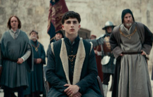 Im Nachhinein hätte sich das Bleiben durchaus gelohnt, denn The King ist eine der willkommenen Überraschungen dieses Festivals. Timothée Chalamet spielt darin Henry V. als einen rebellischen jungen Mann, der nach dem Ableben seines Vaters zum neuen König von England wird. Und so flachbrüstig und zerbrechlich Chalamet auch daherkommen mag, er schafft es, nicht nur seine Landsleute, sondern auch das Publikum für sich zu gewinnen. So viel Charisma legt er als unfreiwilliger Thron-Nachfolger an den Tag, dass er damit auch bei den Akade-Mitgliedern im Hinblick auf das nächste Oscar-Rennen Eindruck schinden dürfte, während Robert Pattinson als der einzige Fehlgriff in der Besetzung eher eine schlechte Parodie des französischen Prinzen Dauphin zum Besten gibt und damit für einige Zeit das Shakespeare’sche Kostümdrama aus dem Gleichgewicht bringt. Wobei man jedoch dazu sagen muss, dass Michôd und Joel Edgerton (der im Film die Rolles von Henrys Verbündetem Falstaff übernommen hat) in ihrem Drehbuch sowieso weniger auf historische Faktentreue setzen als darauf, mit ihrer Neuinterpretationen der Geschichte einen Bogen zur Gegenwart zu schlagen. Von den wahren Ereignissen wie der literarischen Vorlage mehr inspiriert als geleitet, zeigt The King einmal mehr, was passiert, wenn Männer in Führungspositionen, die zu viel Macht und ein allzu großes Ego haben, in ihrem Größenwahn vor nichts und niemandem Halt machen und sich allzu kopflos in Situationen bringen, die letztlich nichts anderes als Krieg, Elend und Tod über das eigene Volk bringen.