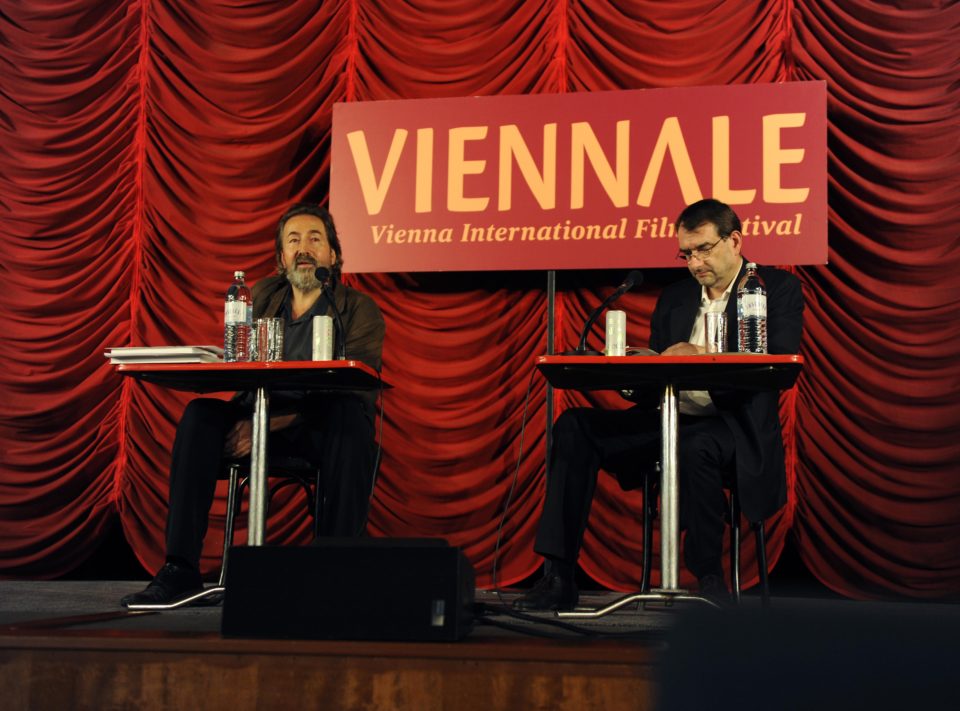Ich muss mich beeilen, denn ich bin bereits zu spät. Es ist 18.05 Uhr und ich verlangsame meinen Schritt, als ich eine beträchtliche Schlange am Eingang des Gartenbaukinos entdecke. „Die fangen nie rechtzeitig an“, meint ray-Herausgeber Andreas Ungerböck und betrachtet lächelnd den ihm vertrauten Zirkus. Überall stehen Leute in der Eingangshalle des Gartenbaukinos, begrüßen einander, ignorieren einander, drängen sich aneinander vorbei. Plötzlich kündigt eine Glocke den Beginn der Vorstellung an, und eine träge Masse bewegt sich Richtung Kinosaal. Wieder eine Schlange. Ich beobachte die Leute, wie sie ihre Namen nennen, die Viennale-Tasche gierig entgegennehmen und in einem hinsichtlich der Besucherzahl eindeutig unterforderten Kinosaal Platz nehmen. Auf der Bühne des Gartenbaukinos haben vor der Leinwand bereits Hans Hurch, der Direktor der Viennale, und Alexander Horwath, der Direktor des Filmmuseums, Platz genommen. Der riesige Saal des Gartenbaukinos scheint auch ohne Film eine eigene Welt zu sein. Es ist vollkommen still. Hurch beginnt zu sprechen, die Vorstellung beginnt. Das Auditorium wird ruhig begrüßt, und es wird versprochen, sich kurz zu halten, obwohl man das anscheinend nie einhält. Im Hintergrund filmen zwei Kameramänner. Der Viennale-Direktor beginnt über den diesjährigen Eröffnungsfilm Amour Fou zu sprechen und lobt ihn sehr. Weiter geht es mit Filmen im Programm, die er jedem ans Herz legen möchte wie A Girl Walks Home Alone at Night und dem diesjährigen Tribute für Viggo Mortensen. Insgesamt bemerkt der Festivaldirektor einen stärkeren Hang zum Politischen in den meisten Filmen.
