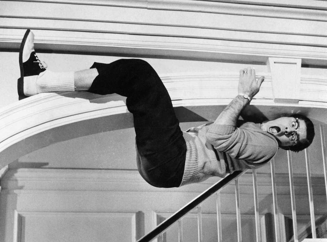 Er scheint über 47 Gesichtsausdrücke, 23 unterschiedlich effiziente Fortbewegungsarten, in jede Richtung dreh- und biegbare Gelenke, Knochen aus Gummi und eine unsichtbare Ganzkörper-Schutzhülle zu verfügen, und schließlich über ein jederzeit abrufbares Höchstmaß an Energie: Jerry Lewis, aka The Geisha Boy, The Bellboy, The Errand Boy, oder auch The Nutty Professor, wie einige seiner bekanntesten Titelfiguren heißen – eine Menge Boys für einen Mann, der damals immerhin auf die Vierzig zuging. Dazu passt, dass ein körperliches Merkmal des Jerry Lewis wenig Variationsmöglichkeiten aufweist: seine Stimme. Lewis’ Figuren quieken oder kieksen oder greinen oder kreischen, beschränken sich auf kindliche, impulsive, ja hysterische Ausdrucksformen, die ebenso wie seine irrwitzigen körperlichen Stunts das Erwachsensein einfach negieren. Das war ein Wagnis in den späten Fünfzigern und in den Sechzigern, aber Lewis hatte schon früher damit begonnen, einfach nicht aufgehört und dann als Produzent, Autor, Regisseur und Hauptdarsteller vieler seiner Filme seine eigene Marke kreiert.