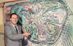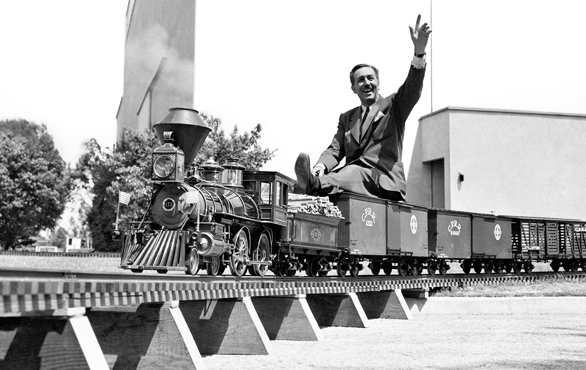 Marketinggenie & Trickfilmkönig Walt Disney (1901–1966) ließ auf einem Orangenhaingelände im kalifornischen Anaheim Anfang der fünfziger Jahre mit einem kleinen Heer an Künstlern und Ingenieuren eine Welt entstehen, die sowohl seine berühmten Figuren von Donald bis Mickey umfasste (Fantasyland), als auch ein unterhaltsames Bild der (US)-Historie zeichnete (Main Street, U.S.A., Adventureland, Frontierland). Doch auch die Zukunft sollte nicht zu kurz kommen: Das sogenannte Tomorrowland entwarf Zukunftsszenarien und sollte Jahrzehnte später die Inspiration für einen Film mit George Clooney sein. Obwohl das von Brad Bird inszenierte Werk 2015 an der Kasse scheiterte und auch die Mehrzahl der Kritiker nicht überzeugen konnte, vermittelte der Film im Kern die Vision, die Disney vorschwebte: eine hoffnungsvolle und schöne, aber auch saubere und technisierte Zukunft. Auch – oder vielleicht gerade weil – die negativen Seiten ausgespart werden, ist das Kapitel über den Tomorrowland-Teil Disneylands das vielleicht spannendste: In diesem Abschnitt kommt der gnadenlos optimistische Geist des amerikanischen „Space Age“ der fünfziger und sechziger Jahre überaus anschaulich zum Ausdruck. Zu den interessanten Details gehört etwa, dass die ersten Raketen, die tatsächlich Menschen zum Mond beförderten, im kalifornischen Downey gebaut wurden, das nur rund dreißig Kilometer von Tomorrowland entfernt war. Auch hier lagen Realität und Imagination also sehr nahe beisammen. Und so ging es auch weiter: Am 22. Juli 1955, fast genau vierzehn Jahre vor der tatsächlichen Mondlandung, debütierte die Disneyland-Attraktion Rocket to the Moon. Die Passagiere konnten, wenn sie nach unten blickten, sehen, wie Disneyland unter ihren Füßen in der Ferne verschwand; blickten sie nach oben, schien ihnen der Mond immer näher zu kommen. Dabei ließ Disney ungeheuren Perfektionismus walten – und wollte nicht nur Illusion, sondern auch Realismus erzeugen. „Uncle Walt“ engagierte nämlich die berühmten Astrophysiker Willy Ley, Heinz Haber und Wernher von Braun, damit alles – vom Gefühl der Beschleunigung über das Dröhnen der Motoren bis hin zum 277.000 km/h schnellen Flug vorbei an einer Raumstation – wissenschaftlich fundiert war.