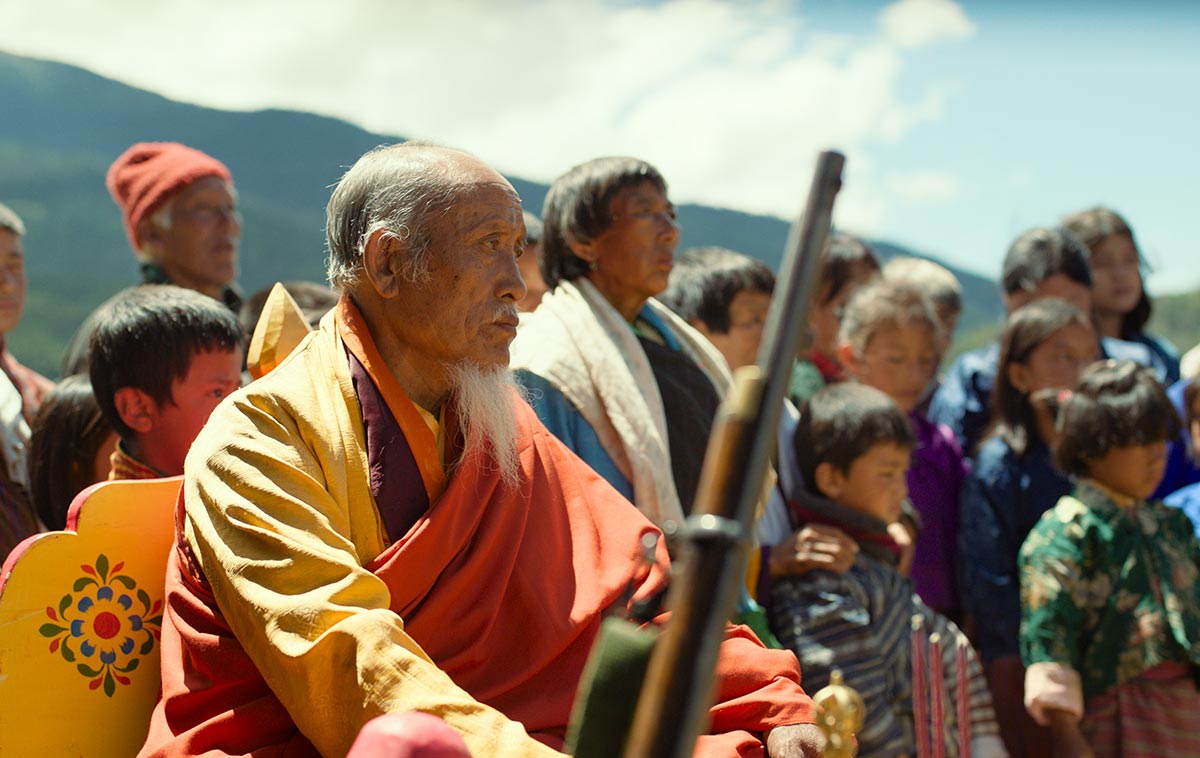 Was er denn wirklich genau will mit dem Gewehr, der Lama, das wird erst ganz am Ende aufgelöst. Dass das geistliche Oberhaupt des kleinen Dorfes Ura in Bhutan damit nichts Böses im Sinn hat, ist jedenfalls von Anfang an spürbar. Filmemacher Pawo Choyning Dorji, dessen Regiedebüt Lunana: A Yak in the Classroom als erste bhutanische Produktion oscarnominiert wurde, setzt die Story historisch in eine Phase großer Umbrüche in der Staatsstruktur Bhutans: Nachdem erstmals politische Parteien erlaubt wurden, stehen 2007 und 2008 Wahlen an. Bhutan wird zur konstitutionellen Monarchie. Aber: Teile der Bevölkerung, vor allem die ländliche, wissen damit nicht viel anzufangen. So werden Wahlbeauftragte in die Dörfer entsandt, um Bewusstsein dafür zu schaffen, welches wertvolle Recht der König seinem Volk da zugesteht. Gänzlich andere Absichten hat hingegen ein junger Mann aus der Stadt, der einen US-Amerikaner – wie sich herausstellt: einen Waffennarr – nach Ura bringt, welcher sich in der malerischen Gegend den Fund eines lang ersehnten Schatzes verspricht. Und der Lama? Der schickt seinen Schüler eben auf die Suche nach einem Gewehr, besser noch gleich zwei, denn er will angesichts der Veränderungen im Land „die Dinge in Ordnung bringen“, wie er kryptisch ankündigt.