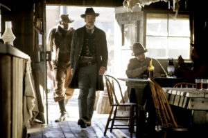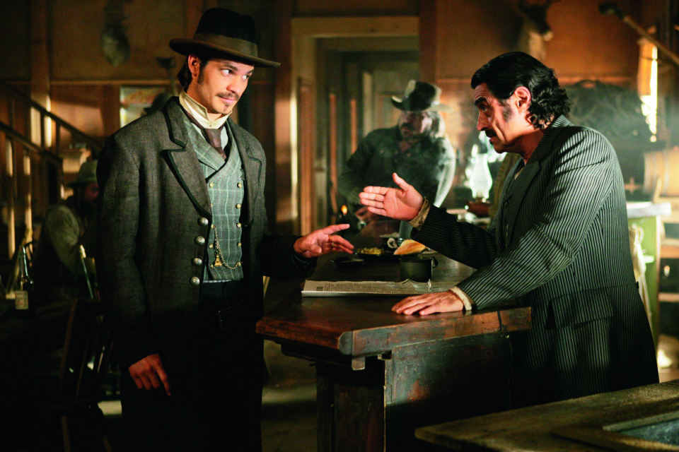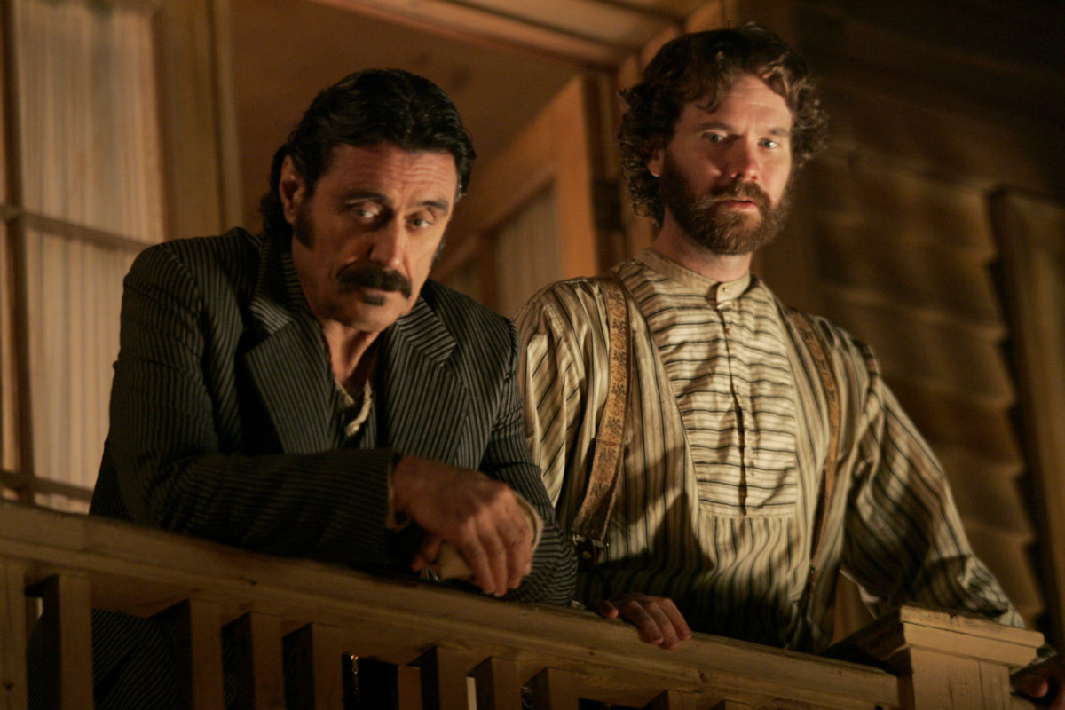 So wie die eingesessenen Alphamänner des Camps zuvor schon gegen einen Außenfeind namens Pockenepidemie ihre Kräfte gebündelt haben, müssen sie ihre Kräfte gegen Hearst bündeln. Das ist nicht ohne Paradoxie, denn auch sie profitieren von den Verlockungen des Goldes, auch sie wollen im Grunde frei sein von –kratien aller Art, ob Aristo-, Demo- oder Bürokratie. Doch ihnen dämmert, dass die aufkommende Herrschaft des Geldes demokratische Kontrolle und eine verbindliche Verfassung braucht, will ihre Gemeinschaft sich vor dem durch schrankenlosen Egoismus programmierten Kollaps retten. Repräsentiert wird der lokale Kampf gegen die Großmacht des Kapitals durch eine Art Weisenrat rund um die zwei inoffiziellen Bosse des Camps, welche als Hauptfiguren die Serie tragen: der wortgewaltige Bordell- und Saloon-Eigentümer Al Swearengen (der Brite Ian McShane spielt hier zweifellos eine der originellsten – und natürlich ambivalentesten – Figuren der jüngeren Seriengeschichte) und „law man“ Seth Bullock (Timothy Olyphant, nicht zufällig später Star von Justified), der eigentlich nur einen Hardware Store für die „prospectors“, für die Goldschürfer in Deadwood betreiben wollte, zusammen mit seinem u.a. aus Wien wurzelnden Partner Sol Star (John Hawkes), der wiederum später zum Wirtschafts- und Finanzexperten des Lagers aufsteigen soll.