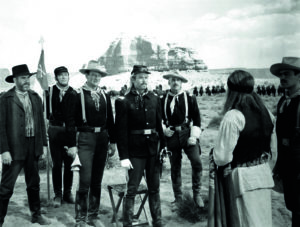 Vielleicht ist es gerade deshalb sinnvoll, Custer im Kino weniger über einzelne Filme zu erfassen, sondern über einzelne Szenen, vielleicht gar nur über Augenblicke. War Custer der eingebildete Außenseiter, wie Errol Flynn in They Died with Their Boots On (1941), der auf einem Esel in Westpoint einreitet und der mit allem spielt außer mit seinem Namen? Einer der besten Momente gelingt Raoul Walsh, wenn der vor Selbstbewusstsein strotzende Galan vor Olivia de Havilland als seiner zukünftigen Frau aufmarschieren muss und für wenige Sekunden Nervosität und Unsicherheit aufblitzen. Oder man glaubt John Wayne, wenn er am Ende von John Fords Fort Apache (1948) vor dem Bild Henry Fondas steht, der als Col. Thursday – der wohl bekanntesten Custer nachempfunden Figur des Genres – seine Männer in den Untergang geführt hat. Er sei wohl ein mutiger Kommandant gewesen, meint einer der anwesenden Zeitungsreporter, worauf Wayne entgegnet: „No man died more gallantly“. Und auf ein Gemälde angesprochen, das in Washington hängt und das Thursday als heroischen Mann im Angesicht des Todes zeigt, sagt Wayne im falschen Brustton der Überzeugung, aber für die Nachwelt: „Correct in every detail.“ Oder man amüsiert sich mit Dustin Hoffman in Arthur Penns Little Big Man (1970), wenn er Richard Mulligan als Custer („There are no Indians there, I suppose“) mit einem billigen Trick und der Wahrheit ins Verderben schickt, weil dieser sich schlauer meint. „Still trying to outsmart me, aren’t you, mule-skinner? You want me to think that you don’t want me to go down there, but the subtle truth is you really don’t want me to go down there!“ Also geht er doch und mit einem lächerlichen roten Halstuch, aber ohne wehende Fahnen unter.