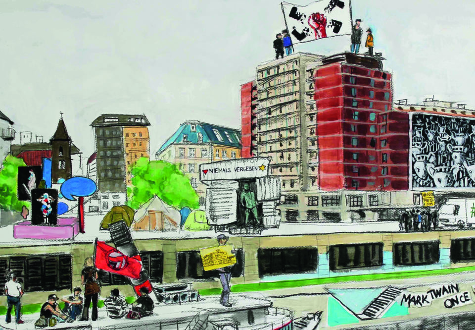 Into the City kommt eigentlich immer so zustande, dass ich mich im August auf Recherchereise durch die Stadt begebe und Orte suche, die Fragen stellen. Wie eben der Morzinplatz, der ein Ort ist, wo man spürt, dass dort etwas nicht stimmt. Man bemerkt, dass es an diesem Platz überhaupt keinen Verweis und keine Dokumentation über die Existenz des Hotel Metropole gibt. Dadurch tun sich an diesem Ort sehr viele Fragen auf, beispielsweise über die Geschichte des Mahnmals für die Opfer des NS-Terrors, welches im Laufe der Zeit zweimal versetzt wurde und sich heute am falschen Platz befindet. Viele Leute glauben heute, die grüne Wiese am Morzinplatz wäre der Standort des Hotels gewesen. Das stimmt aber nicht! Wo das Gebäude stand, befindet sich heute der Leopold-Figl-Hof. Und das ist nur ein Beispiel dafür, wie dringend es notwendig ist, Plätze und Orte mit deren Geschichte und mit verschiedenen Facetten von Geschichte und Geschichten neu zu erzählen.