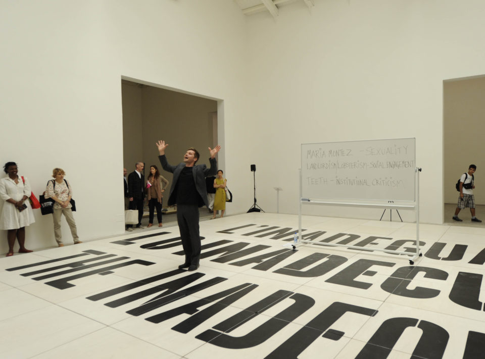 „Einen wichtigen Part werden österreichische Schriftsteller spielen, die Reden in der Secession halten werden. Was ein sehr komplexes Format in einer Ausstellung ist, weil sie sofort als Skulptur wahrgenommen werden oder ihre Rede als Performance. Es kommen eben auch viele Misfits zusammen in diesem Programm, und gerade darauf freue ich mich schon sehr. Wir bauen das ganze fast so auf wie eine Agora, wo die einzelnen Kunstwerke und Sparten hoffentlich konstruktiv miteinander zu sprechen beginnen, vom Zuschauer in einen fiktiven Dialog gebracht werden können.“