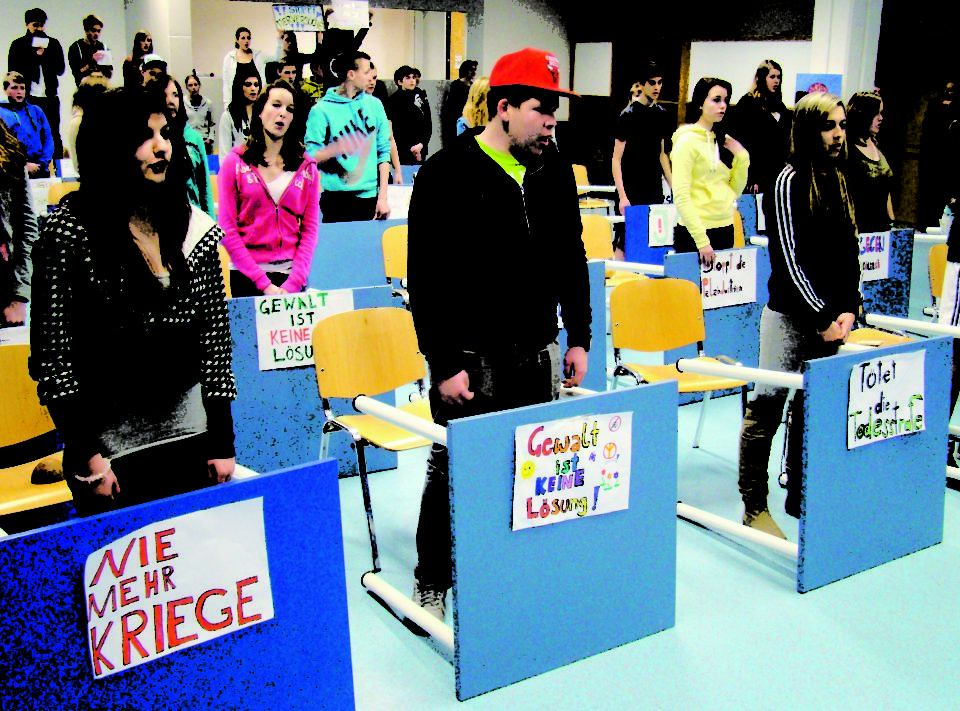 Ein Mädchen hat sofort gesagt. „Wir müssen ernster werden.“ Es gab auch einen kurdischen Schüler, der anfangs viel getratscht hat. Am Tag der ersten Aufführung hatten seine Eltern, die nicht so gut deutsch sprechen, einen Amtsweg, und er musste als Dolmetscher mitgehen. Aber er hat ihnen offensichtlich gesagt, zumindest ist mir das erzählt worden, dass er zu einer bestimmten Uhrzeit auf jeden Fall wieder zurück sein muss, weil er in der ersten Reihe sitzt und das Manifest aufsagt. Bei so einem Projekt lernen die Kinder auch, Dinge selber in die Hand zu nehmen, Verantwortung zu übernehmen und nicht nur Sachen für Schularbeiten auswendig zu lernen. Am Ende betrachteten sie das Projekt zu hundert Prozent als ihr eigenes Ding, dass ihnen nicht von außen aufgezwungen wurde.
