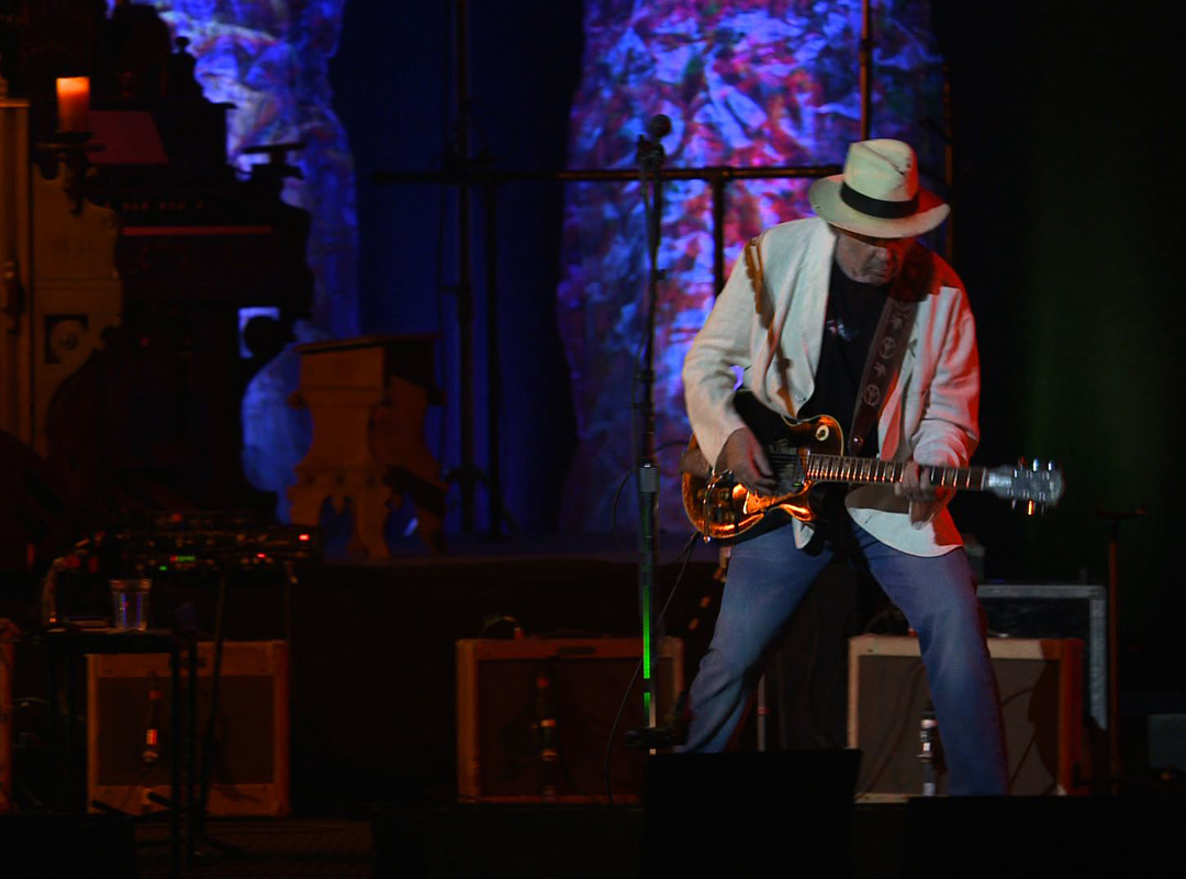 Neil Young: Nein, ich hoffe immer, es ist so, als wären sie nicht da. Ich versuche zu fokussieren. Ich bin total drinnen in der Show und in dem Song, und genauso singe ich ihn. Wenn ich in einem Song lebe, dann ist es so, als sei nichts und niemand anderer da.